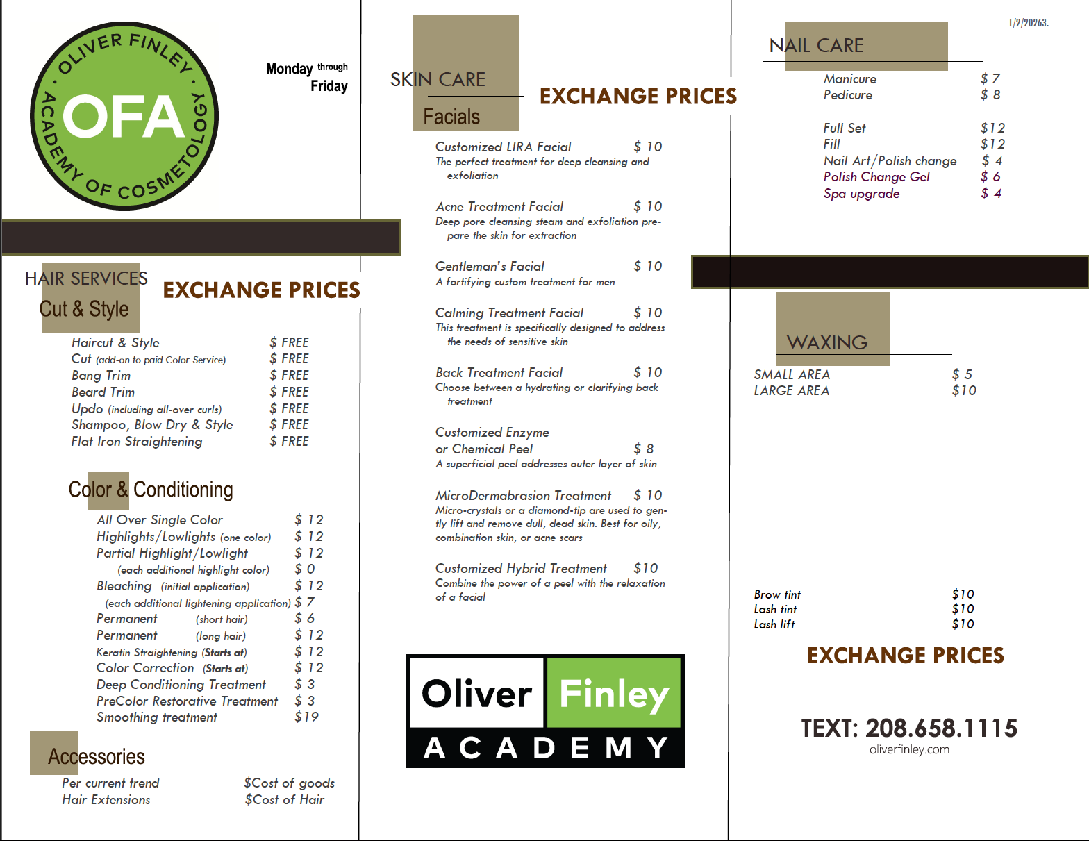 OFA Students: Pricing for Student Service Exchanges are listed below.